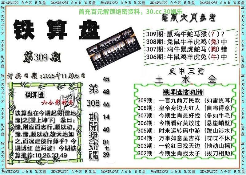 | 308期 | 0.1.2 | 1.4.5.6.9 | 开:兔39中 |